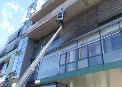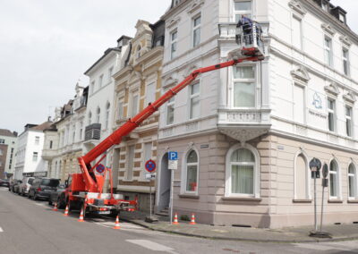 Arbeitsbühnen ermöglichen bei der Fugenversiegelung ein schnelles, sicheres und effizientes Arbeiten in der Höhe. Durch die flexible Positionierung der Bühne lassen sich Fassaden- und Anschlussfugen präzise und ohne aufwändige Gerüstmontage bearbeiten.